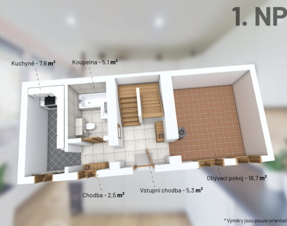 Dům má dispozici 3+1 a už při vstupu vás zaujmou klenuté stropy a původní detaily, které dodávají celému prostoru jedinečné kouzlo. V přízemí se nachází vstupní chodba, obývací pokoj s krbovými kamny, kuchyně a koupelna s WC. Prostor působí domácky a díky kombinaci původních prvků a postupných úprav zde máte skvělou možnost vytvořit si interiér přesně podle vlastních představ.