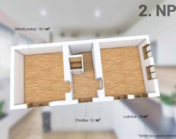 V patře najdete dva samostatné pokoje, které lze využít jako ložnice či pracovny. Velkou výhodou domu je rozsáhlé podkroví, které nabízí potenciál k vybudování další obytné části nebo útulného ateliéru. Pro ty, kdo hledají dům k rekonstrukci, poskytuje tato nemovitost opravdu široké možnosti.