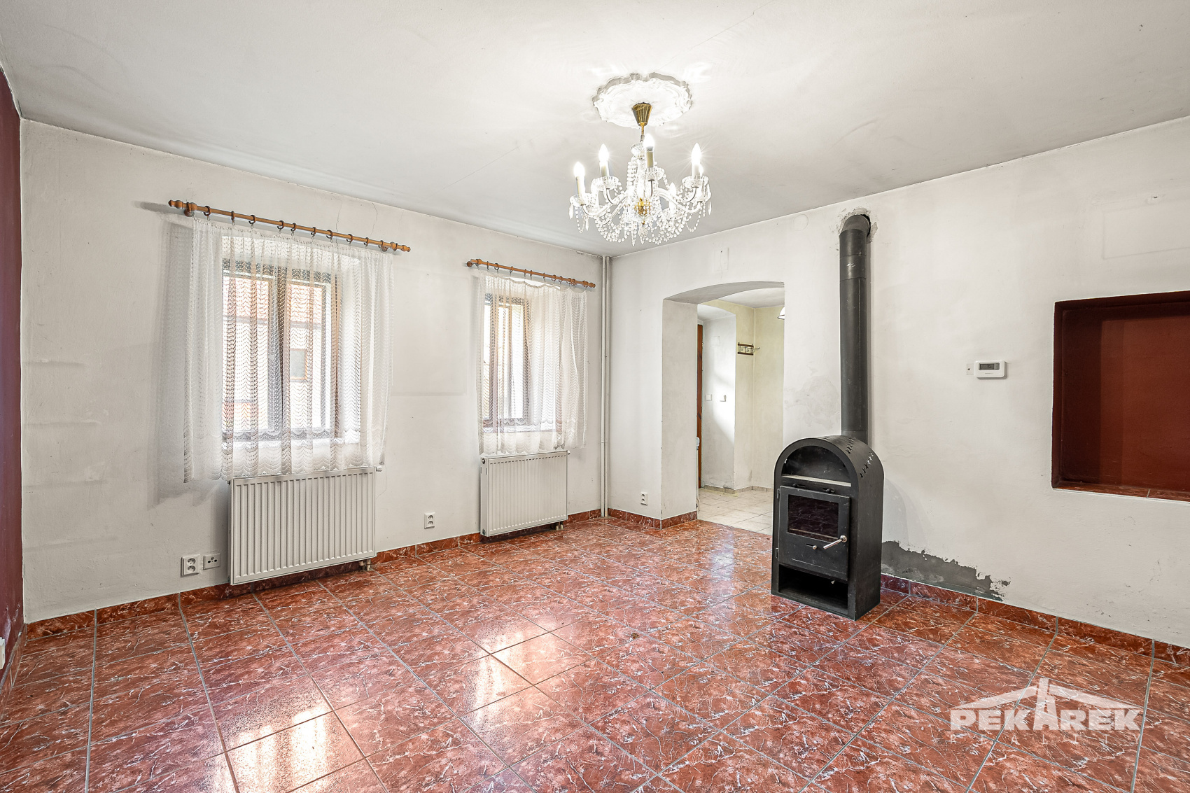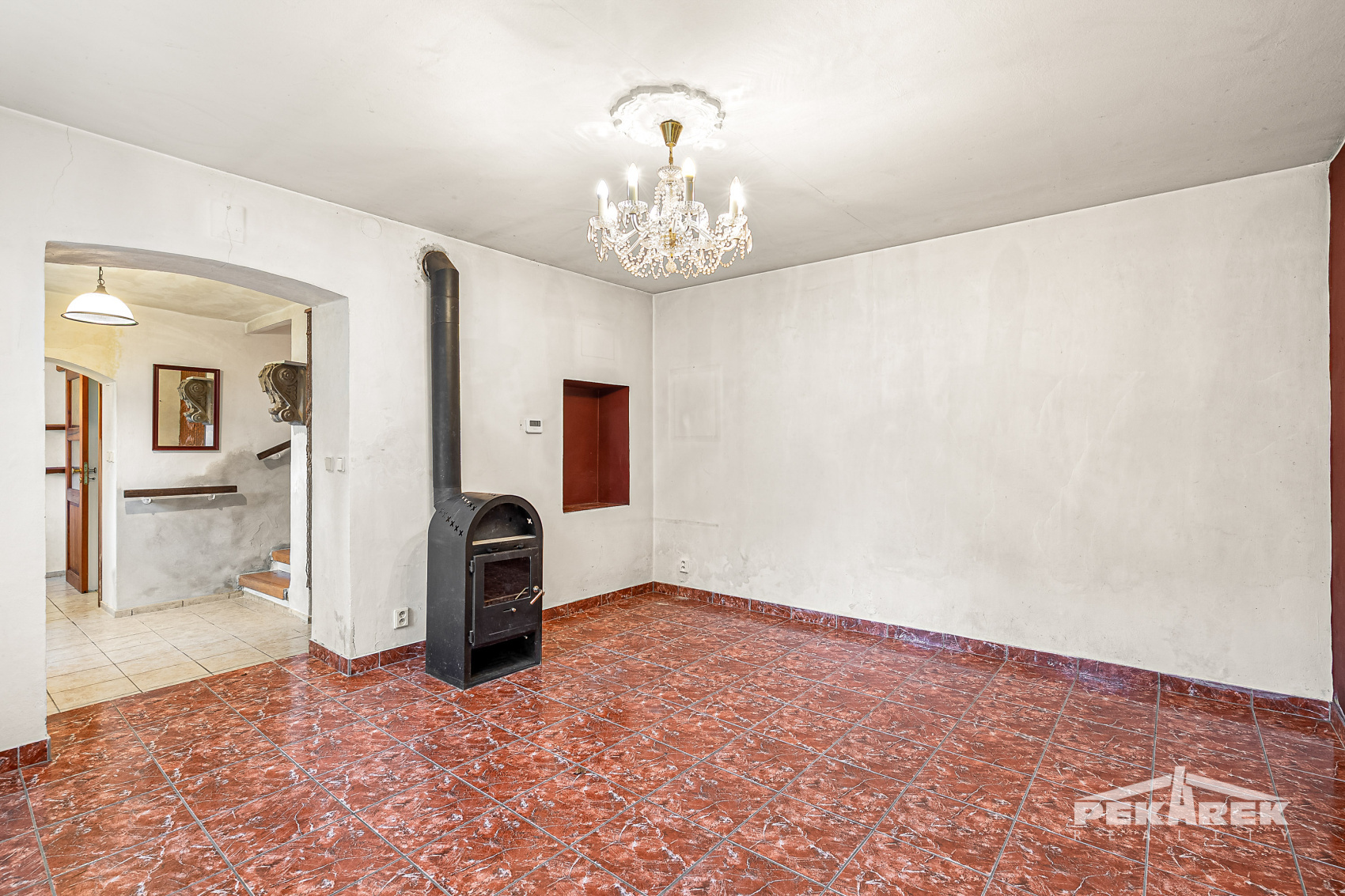 Dům má dispozici 3+1 a už při vstupu vás zaujmou klenuté stropy a původní detaily, které dodávají celému prostoru jedinečné kouzlo. V přízemí se nachází vstupní chodba, obývací pokoj s krbovými kamny, kuchyně a koupelna s WC. Prostor působí domácky a díky kombinaci původních prvků a postupných úprav zde máte skvělou možnost vytvořit si interiér přesně podle vlastních představ.