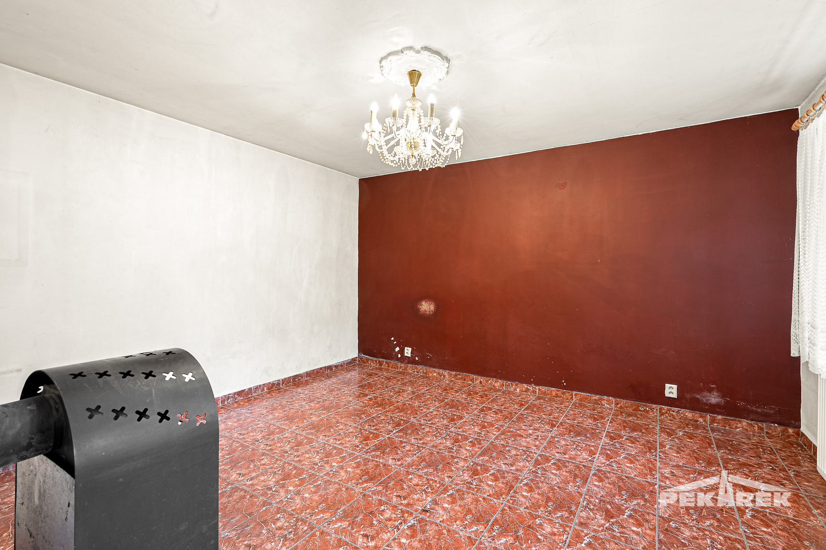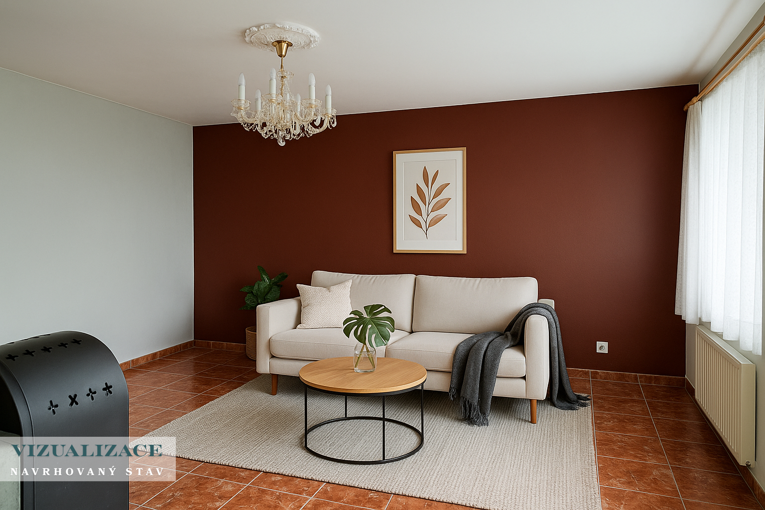 Interiér má prvky starší stavby — dřevěné podlahy, klenby, smíšené zdivo — které dodávají domu příjemnou atmosféru, jakou u moderních novostaveb jen těžko najdete. O vytápění se stará elektrokotel s radiátory a v obývacím pokoji krbová kamna, která dokážou krásně vyhřát přízemí.