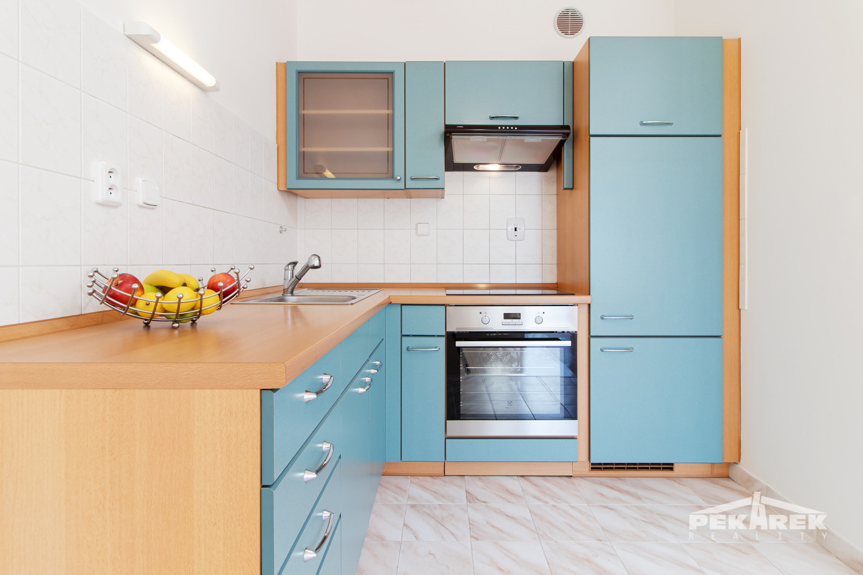 Dispozičně byt nabízí vstupní chodbu, obytný pokoj o velikosti 22 m² s kuchyňským koutem a přímým vstupem na balkon orientovaný na jih s volným výhledem do zahrady. Kuchyňská linka je vybavena vestavěnou lednicí s mrazákem, sklokeramickou varnou deskou, elektrickou troubou a digestoří. Koupelna o velikosti 4 m² disponuje sprchovým koutem, pračkou a toaletou.