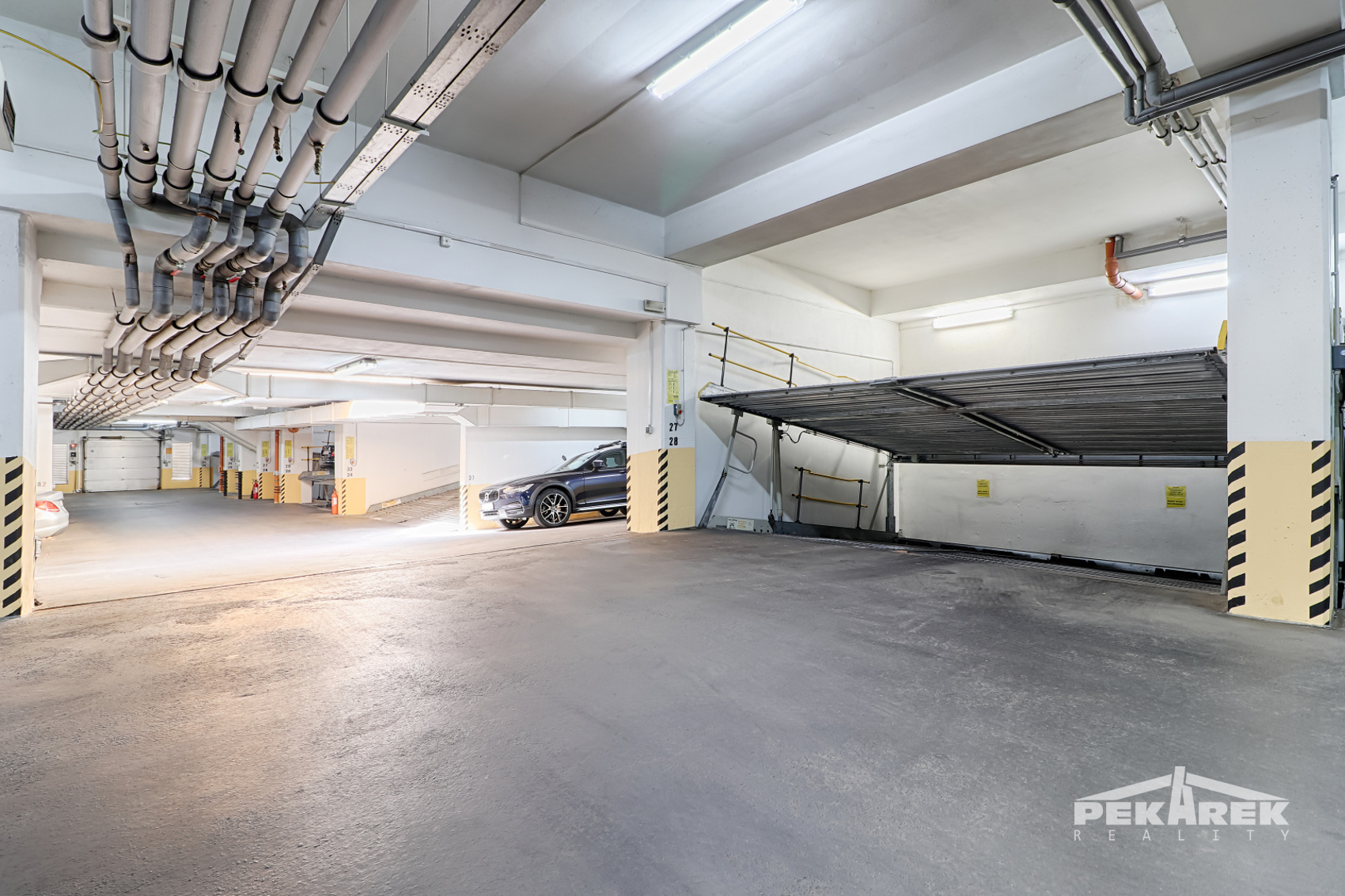 K bytu náleží sklep o velikosti 2 m² a garážové stání v zakladači (14 m²). V suterénu domu je k dispozici také společná kočárkárna a místnost pro kola. Vytápění objektu je zajištěno centrální plynovou kotelnou.
